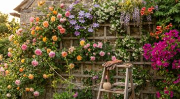 Pour une couverture rapide, les annuelles comme l’ipomée, la capucine grimpante, et la Suzanne aux yeux noirs peuvent coloniser un treillis léger en une saison. Ces plantes offrent des fleurs variées, des trompettes aux couleurs vives aux petites fleurs comestibles. Les grandes grimpantes, telles que la glycine, l’hortensia grimpant, le lierre, et la bignone de Virginie, apportent des touches durables avec leurs floraisons spectaculaires et leurs feuillages colorés.