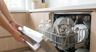 - Vider la machine dans l’heure qui suit, en retirant les couverts en premier.