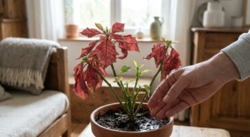 En effet, à la fin de l’hiver, le poinsettia entre dans une phase de dormance. Nastya Vasylchyshyna, experte botaniste, explique que c’est durant cette période que la plante se prépare à une nouvelle croissance et à une floraison pour les fêtes suivantes. Pour l’aider, il est conseillé de placer le pot dans une pièce claire, mais fraîche, avec une température ambiante autour de 13 à 16 °C, loin des sources de chaleur et des courants d’air.