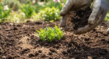 Pour préparer le coréopsis, commencez par tailler les tiges sèches et retirer les feuilles mortes autour de la plante, afin que l’engrais puisse toucher le sol. Étendez une fine couche de compost bien décomposé autour de la touffe. Si le terrain est très pauvre, ajoutez quelques granulés d’engrais équilibré à libération lente, comme un NPK 10-10-10, sans toucher le collet. Un arrosage léger permettra de faire descendre les nutriments vers les racines.