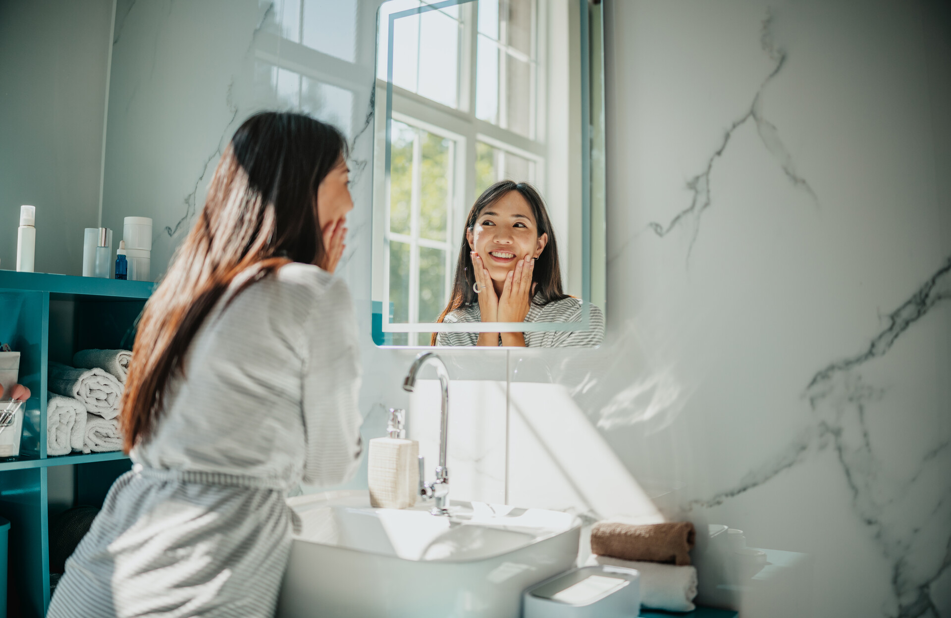 En parallèle, le miroir intègre un analyseur de peau fonctionnant grâce à l’intelligence artificielle. Cet outil permet de suivre l’évolution de vos préoccupations cutanées au fil des semaines. Qu’il s’agisse de rougeurs, de taches ou de texture, il fournit une vision objective de l’état de votre peau dans le temps, quelque chose qu’aucune crème ne peut offrir. Bien que cela ne remplace pas une consultation dermatologique, c’est un complément précieux pour mieux comprendre vos besoins cutanés.