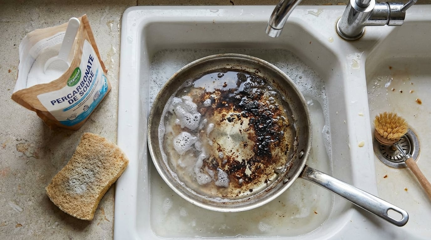 Nettoyage efficace des poêles brûlées : la méthode au bicarbonate et percarbonate