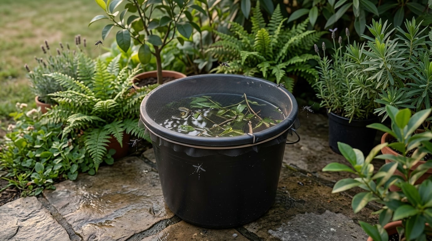 Le piège à moustiques tigres reproduit cet environnement idéal tout en empêchant la sortie des nouvelles générations. En plaçant de l’eau troublée par des déchets verts dans un seau noir, les femelles sont attirées et pondent à travers la moustiquaire ou au contact de l’humidité. Les larves qui émergent sont piégées sous le filet et ne peuvent rejoindre votre table.
