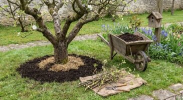 Pour cela, étalez sous l’arbre environ 10 litres de compost mûr, trois poignées de cendres et deux bacs de feuilles mortes broyées. Griffez légèrement le sol pour incorporer ce mélange sans blesser les racines. Cette décomposition se fera progressivement, nourrissant ainsi l’arbre sur plusieurs semaines.