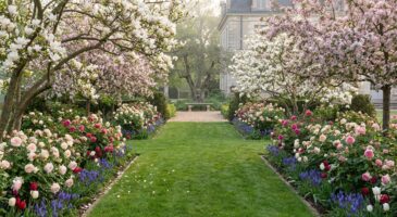 Si vous disposez d’une cour ou d’un balcon, transposez ce concept en pots : un pommier d’ornement nain ou un magnolia compact dans un grand bac, entouré de jardinières de muscaris et de tulipes, et de potées de géraniums, d’œillets et de chrysanthèmes pour l’automne. Avec une taille régulière des rosiers, le pincement des chrysanthèmes au début de l’été et la replantation annuelle des bulbes, vous pourrez maintenir un décor net, vivant et en harmonie avec le passage des saisons, tel que l’avait souhaité Jackie Kennedy.