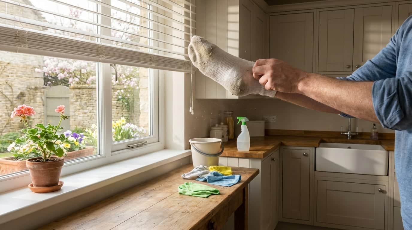 Pour nettoyer vos stores sans les décrocher, il suffit d’adopter une méthode traditionnelle qui ne nécessite qu’un accessoire du quotidien : une chaussette orpheline. Voici comment procéder : préparez un mélange composé de moitié d’eau tiède et de moitié de vinaigre blanc, auquel vous ajouterez deux cuillères à soupe de bicarbonate de soude. Ce mélange, à la fois naturel et efficace, est parfait pour éliminer les traces et la saleté.