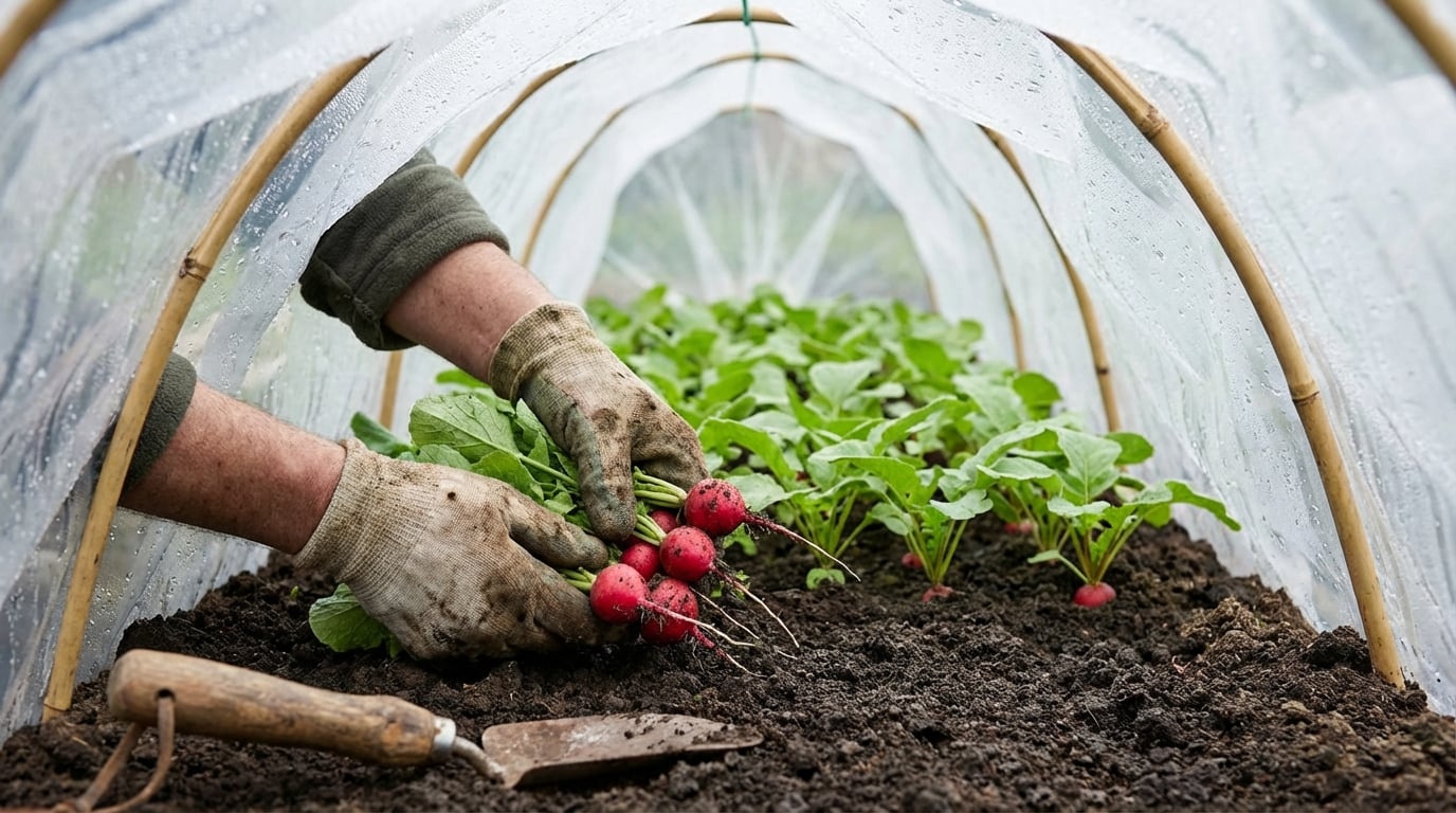 Face Ă  ces dĂ©fis, l’approche japonaise privilĂ©gie la prĂ©vention des chocs plutĂŽt que leur correction. L’idĂ©e est simple : offrir aux radis une croissance rapide et rĂ©guliĂšre dans un microclimat stable. En fin d’hiver, le sol est souvent trop froid, et les vents dessĂ©chants rendent la culture difficile. C’est pourquoi il est conseillĂ© de semer sous voile, tunnel de forçage ou chĂąssis, qui protĂšgent des intempĂ©ries et adoucissent les tempĂ©ratures.