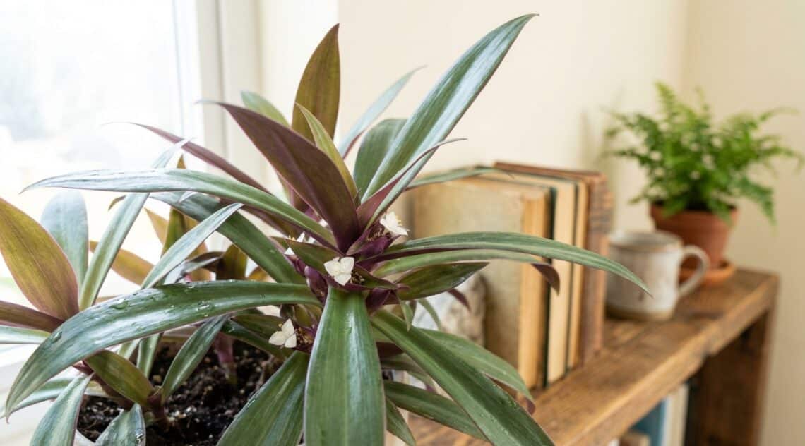 Pour entretenir la beauté de votre Tradescantia spathacea, il est important d’éviter certaines erreurs courantes. Lorsque la plante reçoit la lumière adéquate, son revers pourpre reste intense et les petites fleurs blanches apparaissent régulièrement. L’application d’un engrais liquide pour plantes vertes, très dilué, une fois par mois au printemps et en été, permet de maintenir des rosettes compactes et colorées. Un simple chiffon humide peut également suffire à dépoussiérer les feuilles.