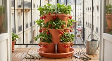 - Un pot empilable à moins de 2 € permet de cultiver jusqu’à 15 fraisiers sur un balcon.