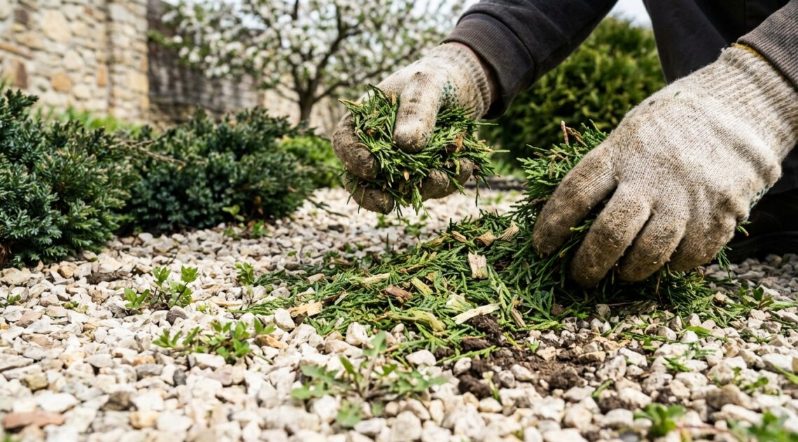 Concrètement, commencez par désherber grossièrement la zone à traiter. Griffez le sol, arrosez légèrement, puis étalez le paillis de thuya sur une épaisseur de 5 à 7 centimètres, pouvant atteindre 10 centimètres sur les allées très envahies. Ce type de paillage est idéal pour les allées gravillonnées, les pieds de haies et les massifs d’arbustes persistants ou de plantes acidophiles comme les bruyères et les fougères. De nombreux jardiniers témoignent que des allées carrossables, jadis envahies, restent presque impeccables tout au long de l’année après ce traitement.