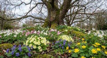 Ces plantes sont particulièrement adaptées aux zones ombragées du jardin, où elles peuvent combler le vide visuel laissé par l’hiver. Elles se plaisent à coloniser le pied des arbres, les bordures de haies ou les zones d’ombre, apportant une touche de couleur grâce aux primevères Primula vulgaris, aux violettes et à la ficaire fausse renoncule Ficaria verna.