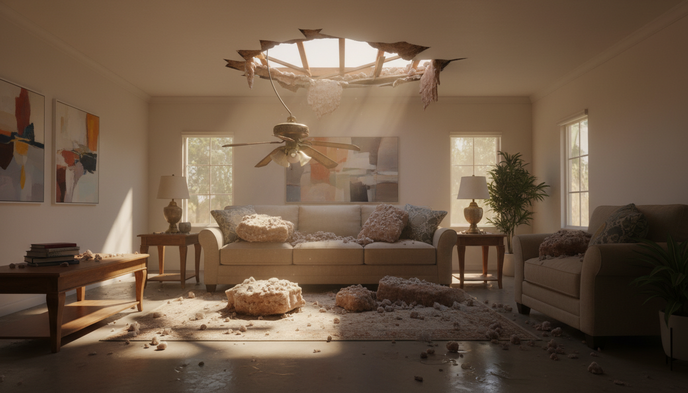 Imaginez-vous en train de profiter d’une sieste tranquille lorsque soudain, un bruit assourdissant vous réveille. Vous vous précipitez dans le salon pour découvrir un spectacle incroyable : un trou béant dans le plafond, des morceaux de glace éparpillés sur le sol, et un bloc de glace marron et blanc posé sur l’accoudoir de votre canapé. C’est l’incroyable histoire de Yudar Grau, un résident de Whittier, en Californie, qui a récemment vécu cette expérience surréaliste.